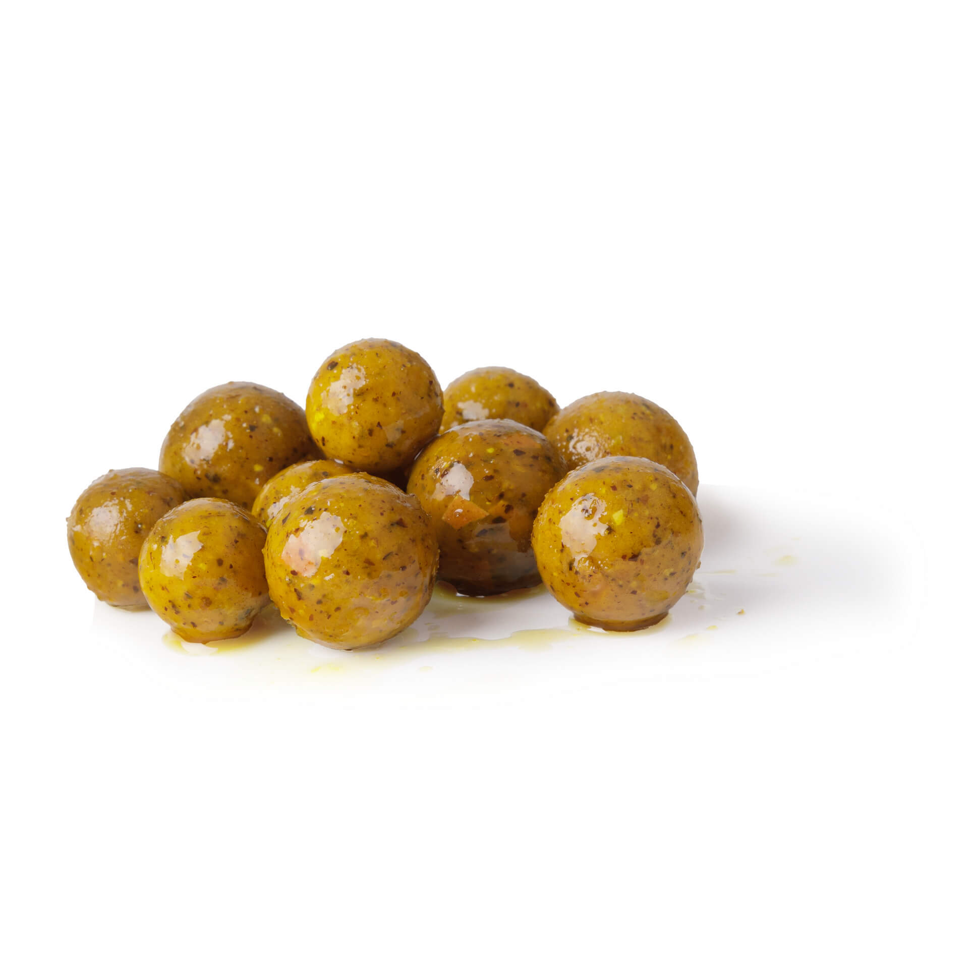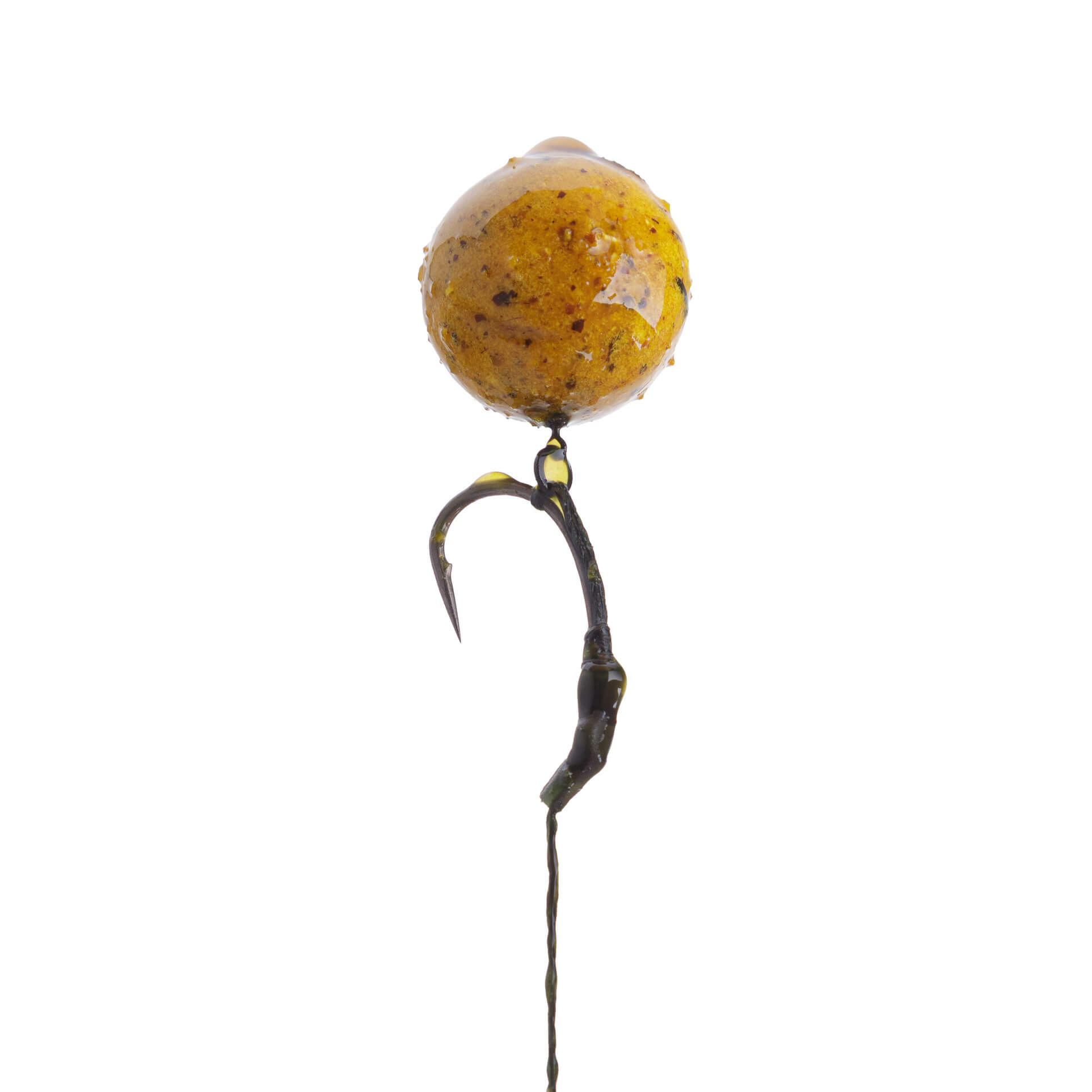 Dipowane Kulki Haczykowe Ananas to przynęta stworzona z myślą o skutecznym łowieniu karpi w każdych warunkach. Skład bazuje na słodkich mączkach jak 30% mączki z orzecha tygrysiego i 10% mączki biszkoptowej oraz Robin Gold Haith's. Każda kulka została zalana gęstą zalewą Amino z dodatkiem mączek i przypraw, dzięki czemu intensywnie pracuje w wodzie i stopniowo uwalnia silny sygnał pokarmowy.