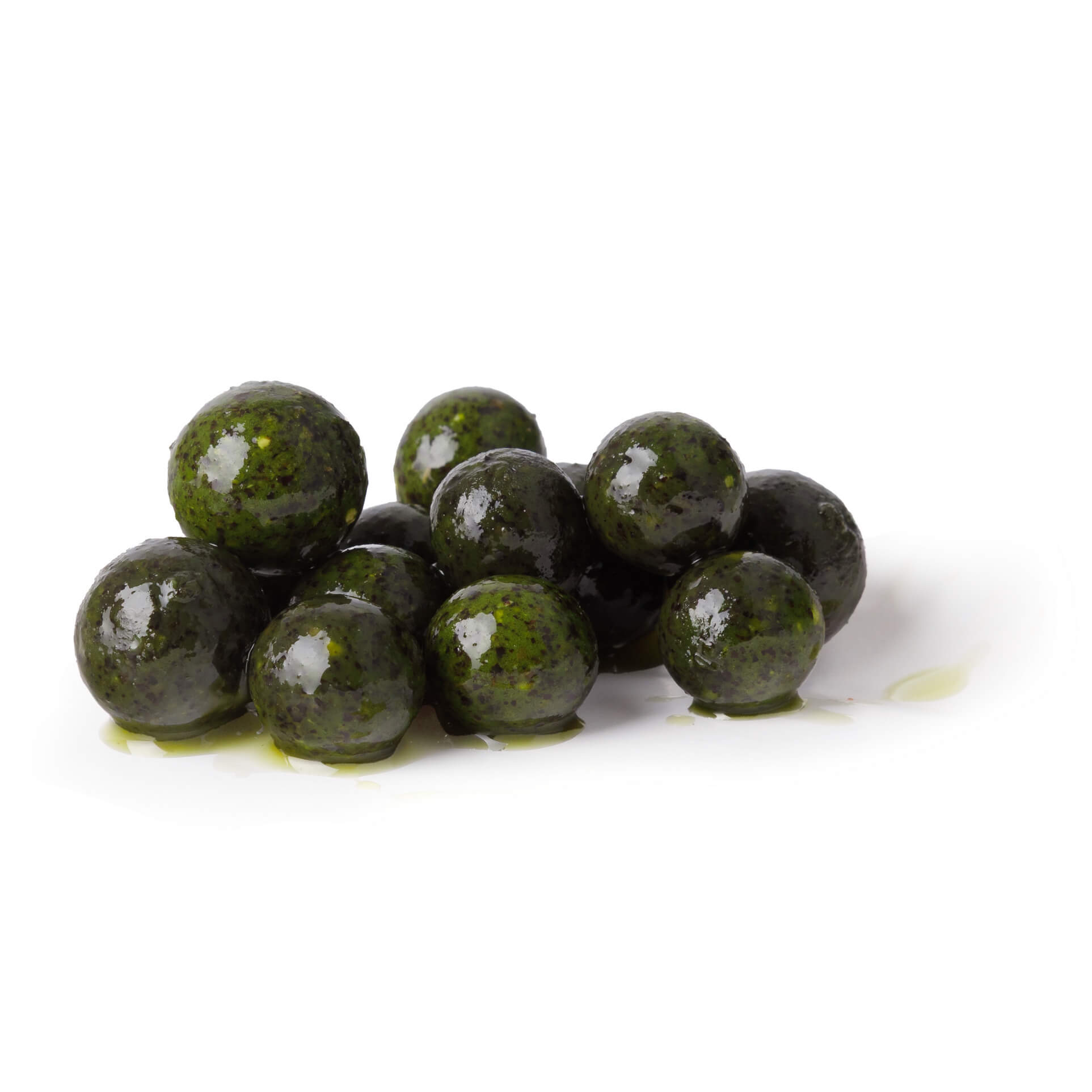 Każda kulka została dodatkowo zalana gęstą zalewą Amino z dodatkiem mączek i przypraw, dzięki czemu stopniowo uwalnia silny sygnał pokarmowy i zwiększa atrakcyjność zestawu.
