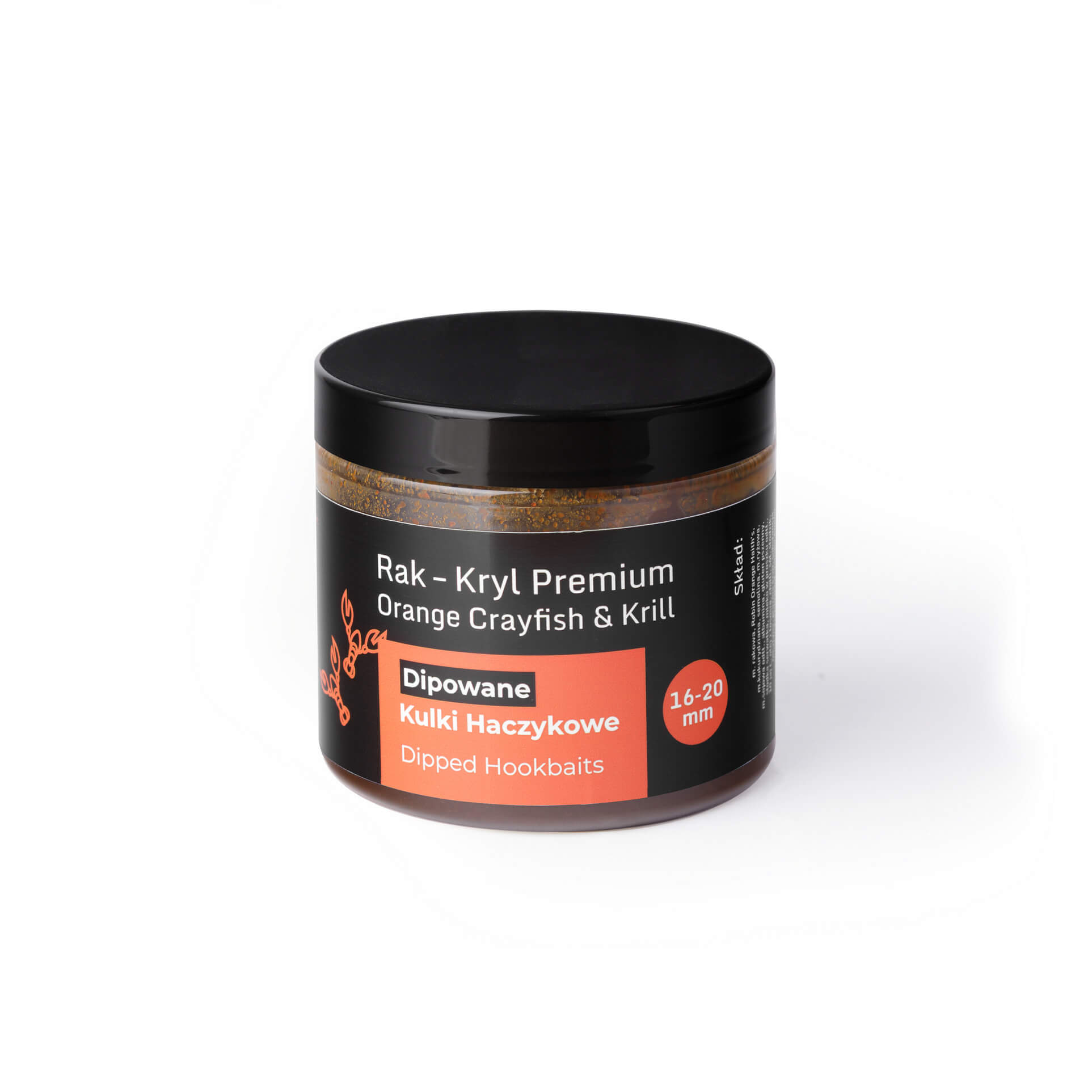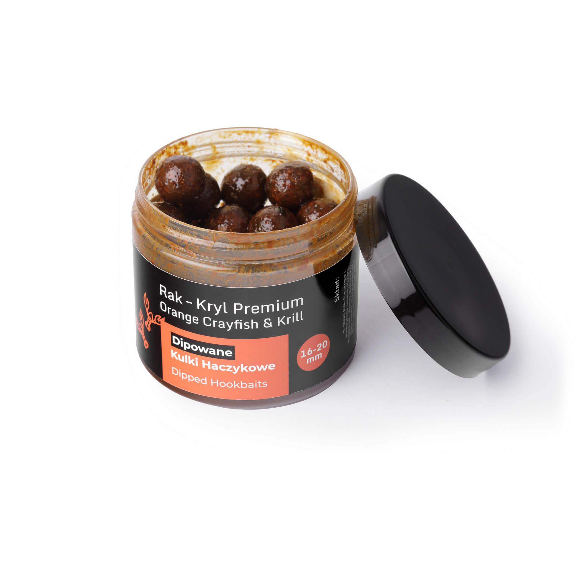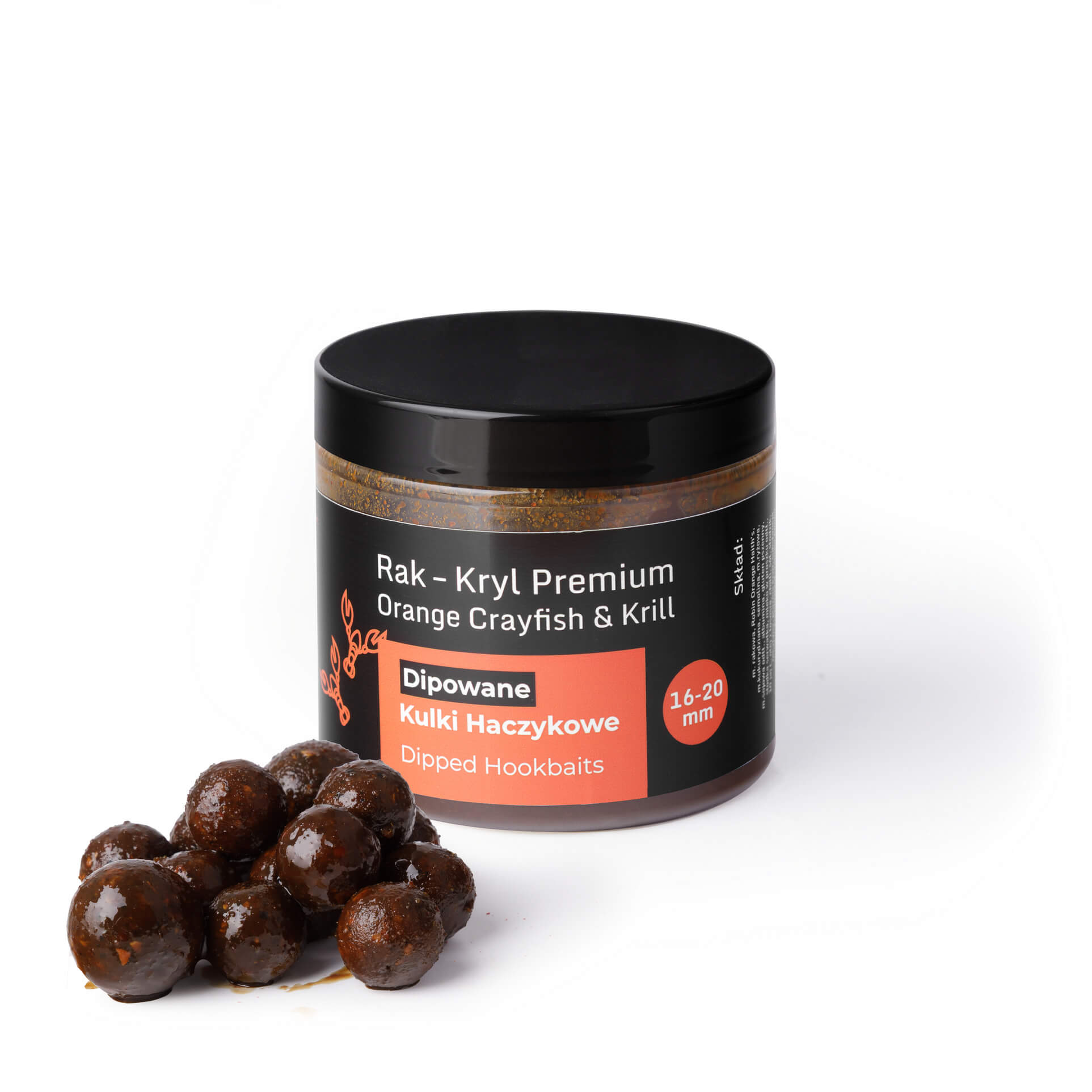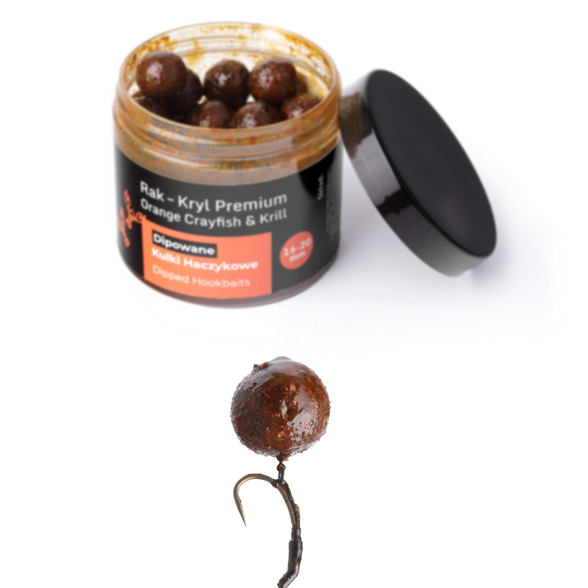 Dipowane Kulki Haczykowe Rak – Kryll to mocna, naturalna przynęta oparta na wysokiej zawartości składników pochodzenia zwierzęcego. Receptura zawiera aż 20% mączki z raka oraz 20% mączki z kryla, a dodatkowo została wzbogacona o hydrolizat z łososia, który wzmacnia sygnał aminokwasowy i podnosi wartość biologiczną kulki.