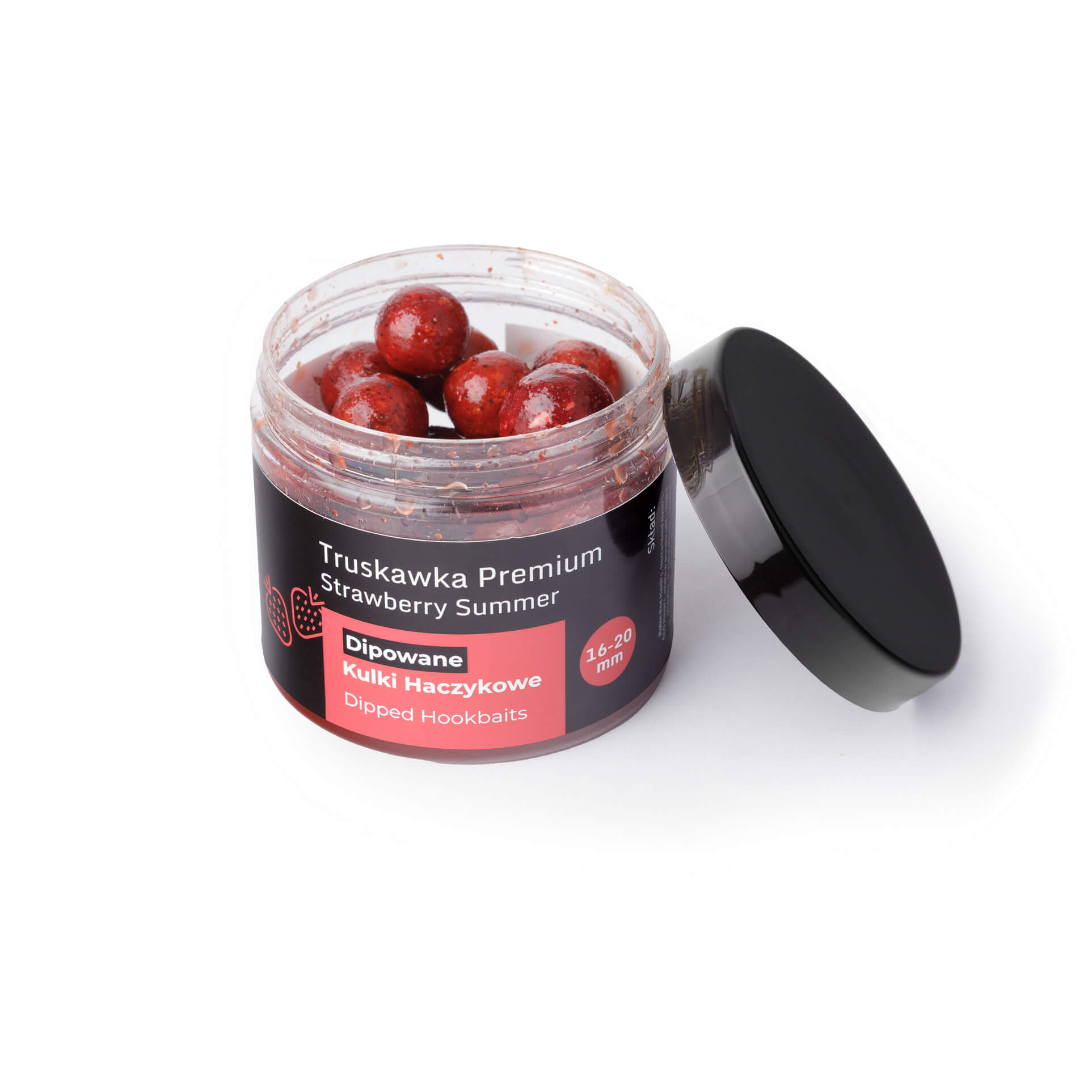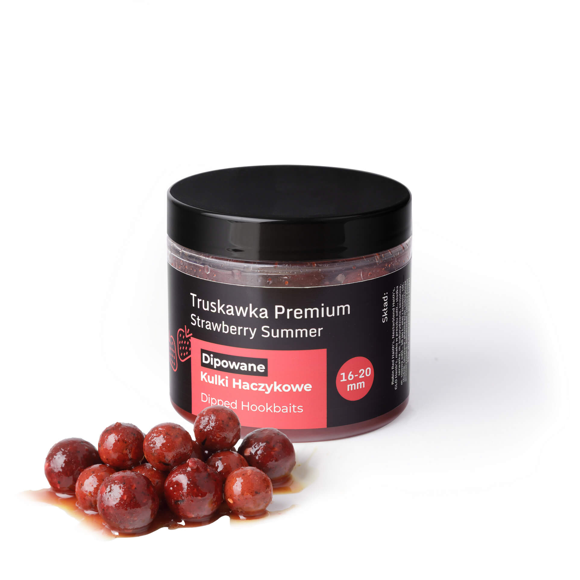 Dipowane Kulki Haczykowe Truskawka to połączenie klasycznej owocowej nuty z intensywną zalewą aminokwasową, które zwiększa skuteczność zestawu od momentu trafienia do wody.
