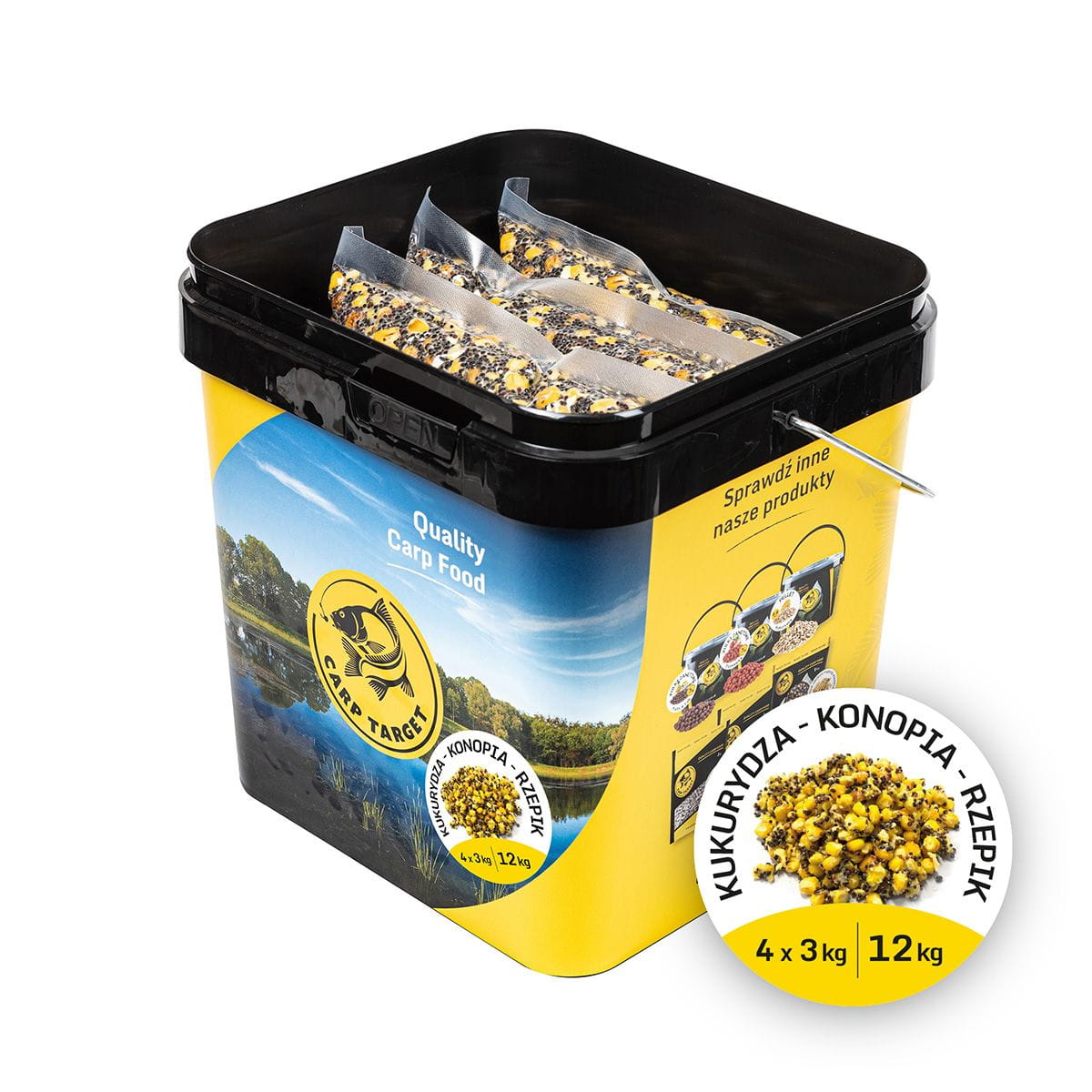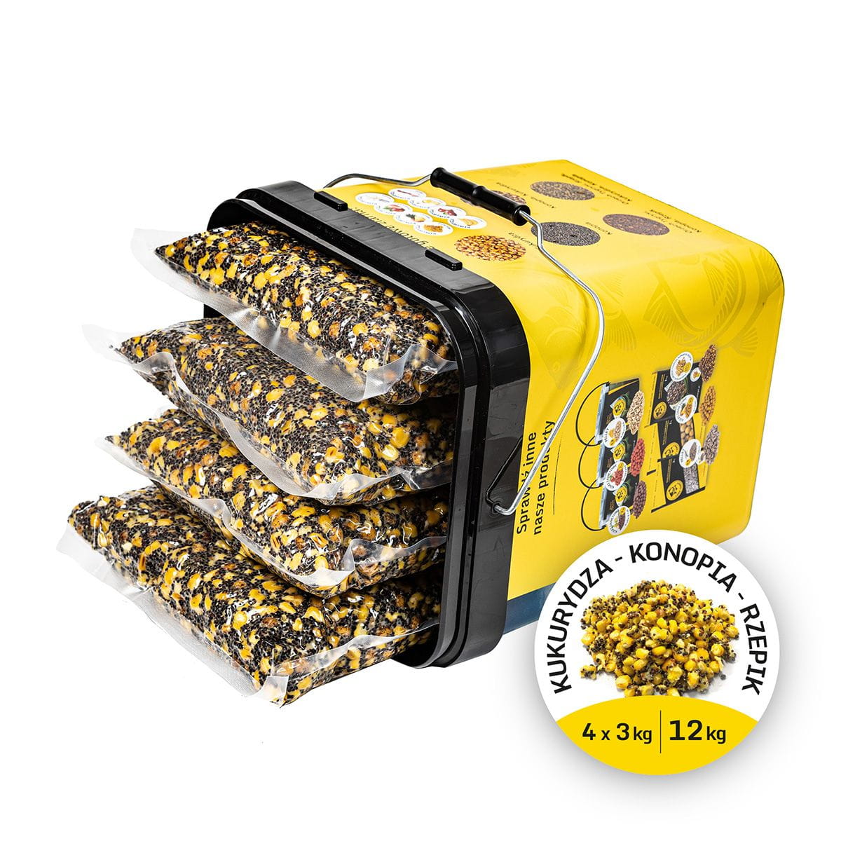 Kukurydza Konopie Rzepik MIX Ziaren Zanęta 12 kg (4x3kg) + Wiadro 17L